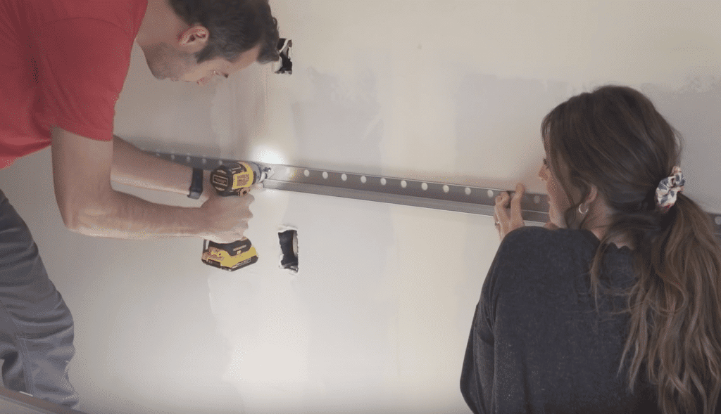- Utilisez le rail de montage mural autant que possible, directement ancré dans les montants. Cela accélère le montage, garantit l’alignement et la stabilité. Réglez les pieds avant pour la mise à niveau, puis vissez les caissons ensemble.